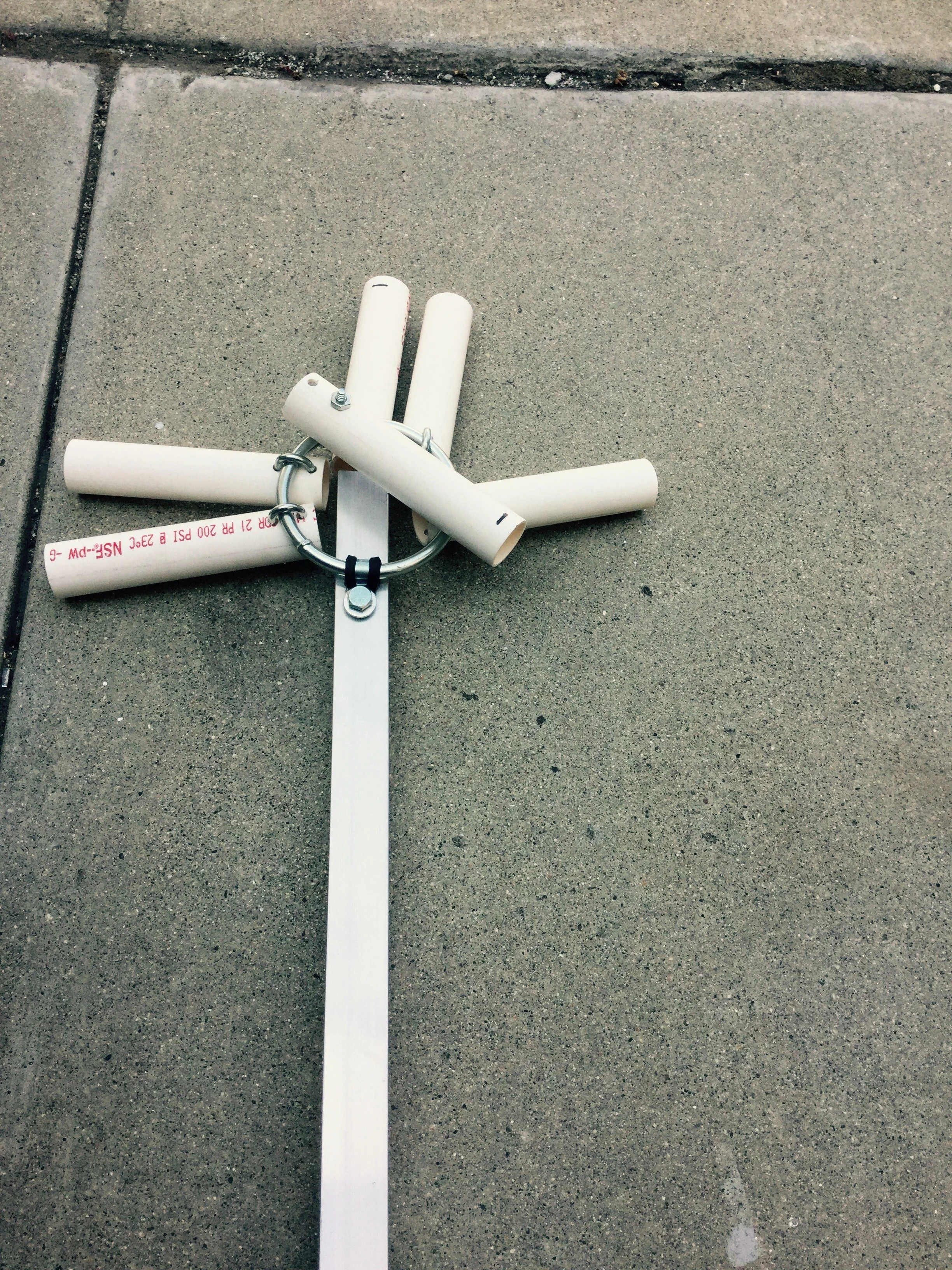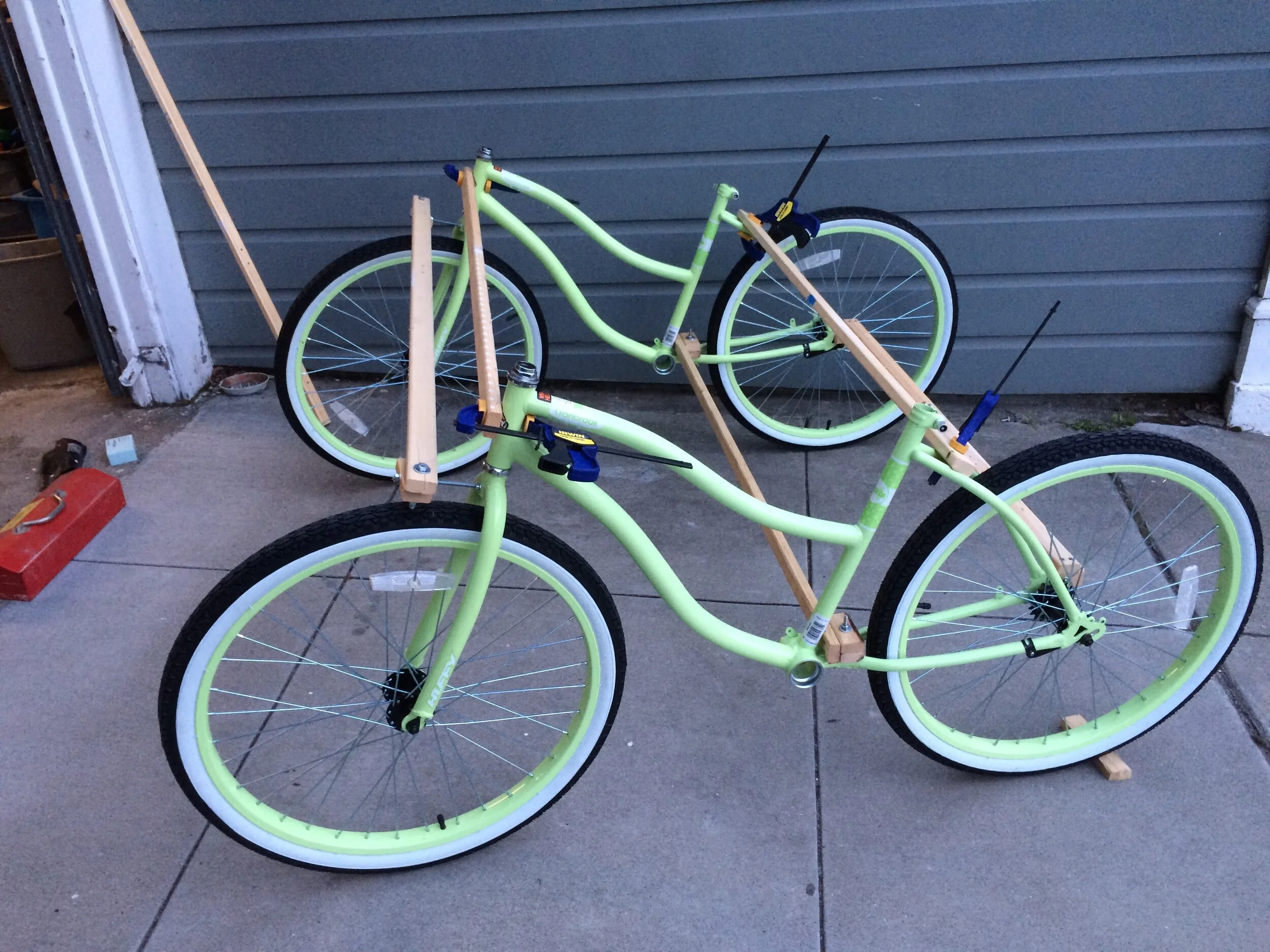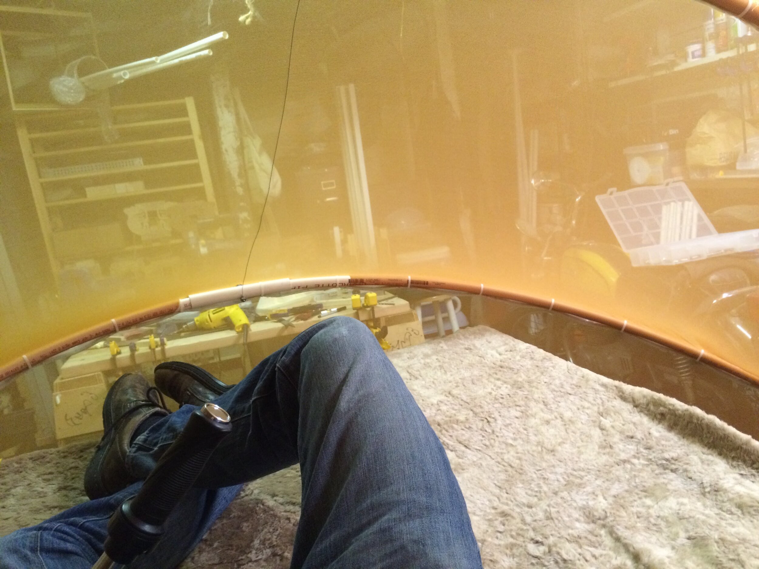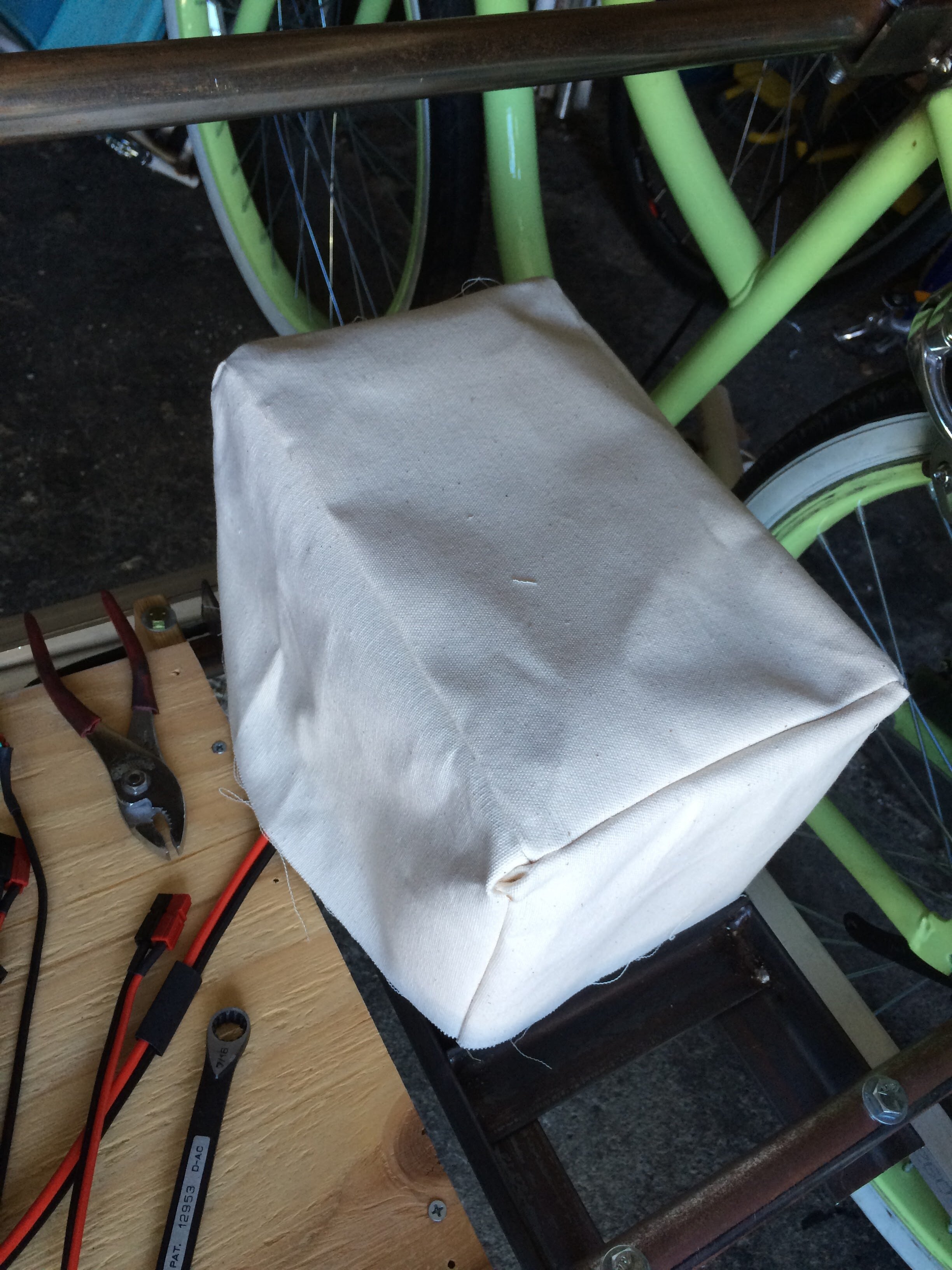 The car is made from two bicycles joined by parts that Garth fabricated to hold them together. In particular, he linked the front wheels via ball joints which implemented Ackermann steering geometry to drive the car. It is powered by two 350-watt motors. The outer shell is made of PVC pipe and sewn, stretched fabric.