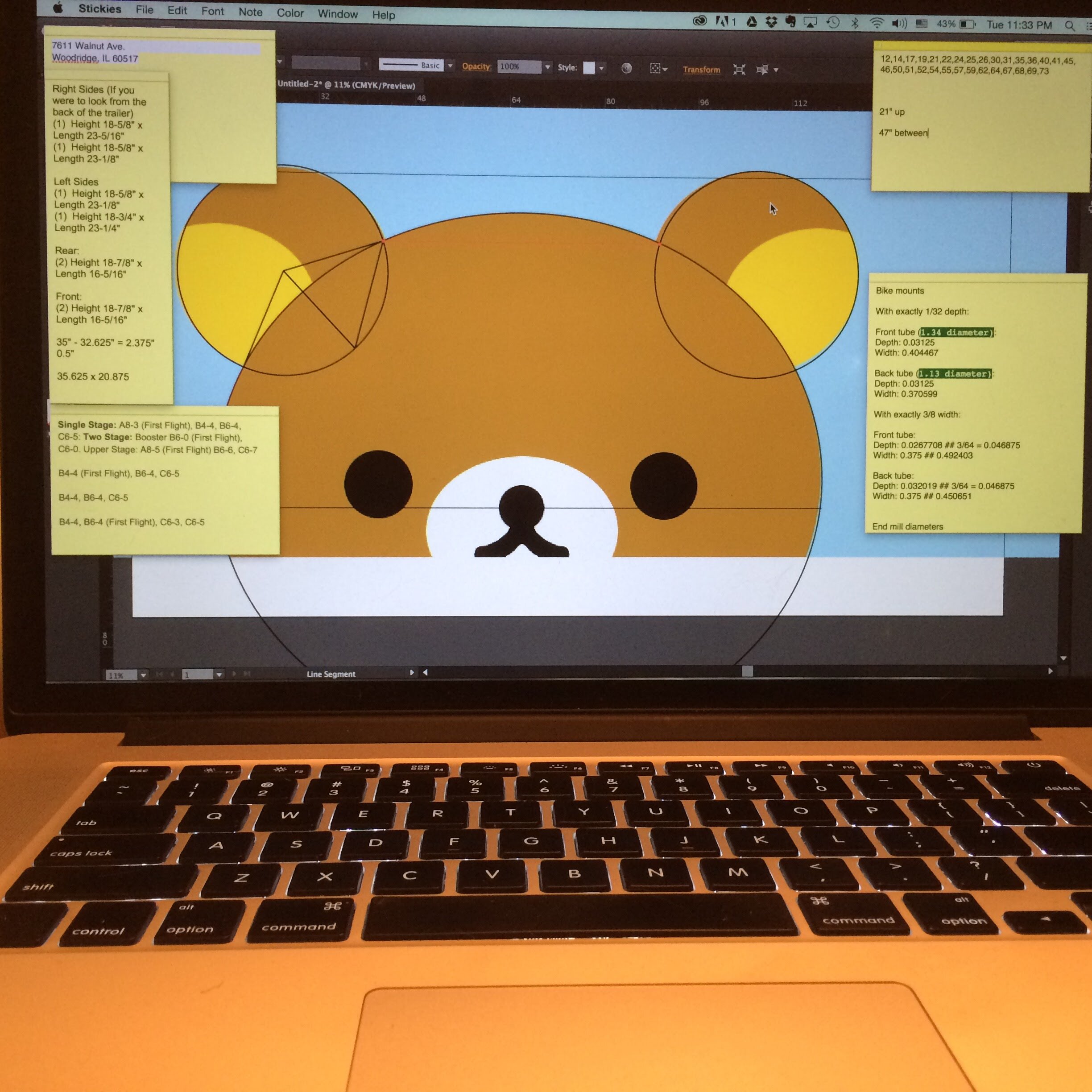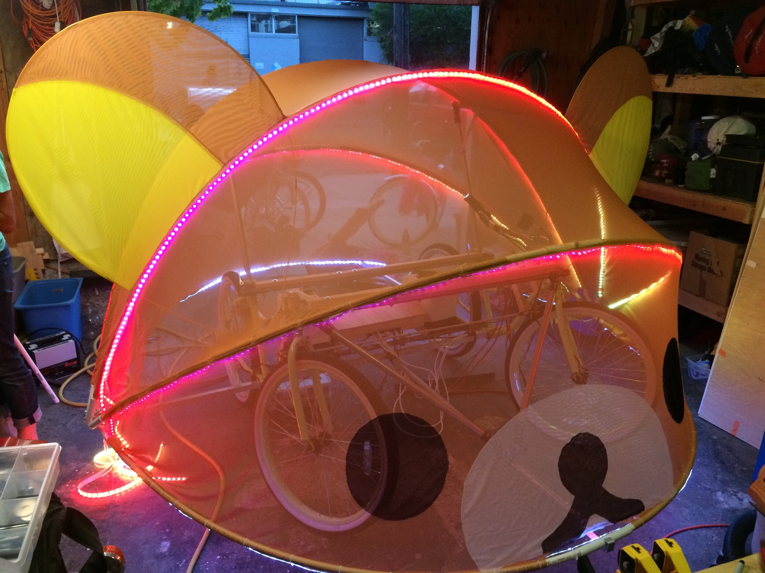Jen had always wanted an art car for Burning Man however she never wanted something that was going to be impossible to transport. Garth designed a car that would easily break down into manageable parts and designed it in Jen's favorite bear character, Rilakkuma.