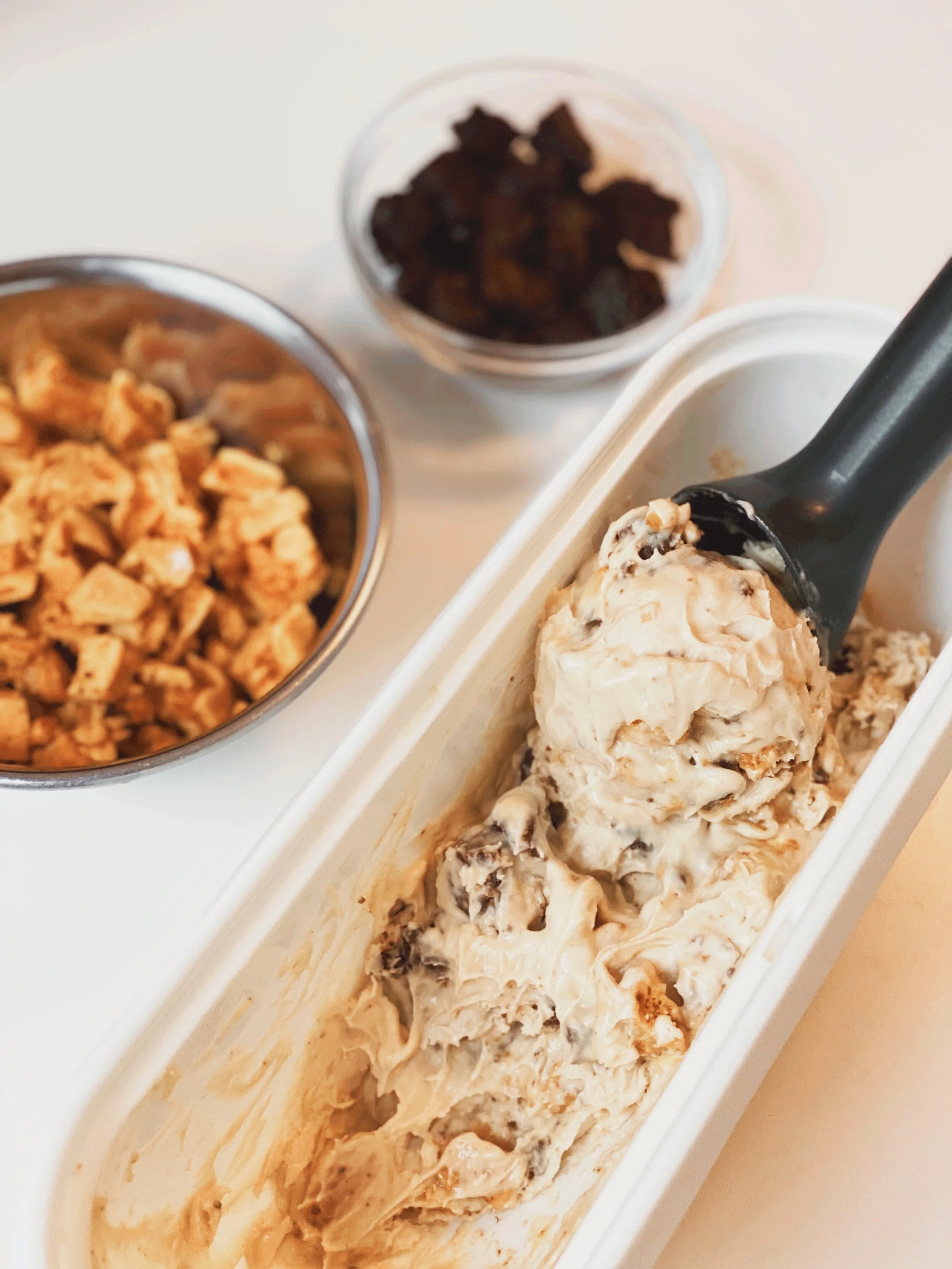 Jen uses a Cuisinart ICE-100 to churn her ice cream. She makes her own cashew milk with a 1:1 cashew to water ratio yielding ~15% “milk” fat. Below are her basic recipes which can be easily adapted for different flavors using this spreadsheet to determine the right fat ratios for a creamy ice cream.
